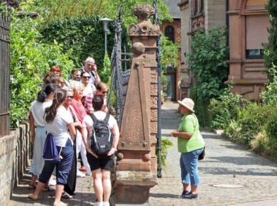 Durch das Fachwerkstädtchen Annweiler, die zweitälteste Stadt der Pfalz nach Speyer, mäandern winzige Gassen und das Flüsschen Queich. Im einstigen Wohnviertel der Gerber an der Wassergasse entlang der Queich stehen schöne Häuser und zwei sanierte Mühlräder. Bis zum Beginn des 20. Jh. gingen Gerber hier noch ihrem Handwerk nach.